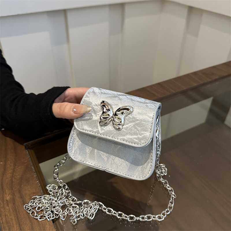 超火小包包女2024新款链条斜挎包百搭夏天国风银色迷你包女口红包