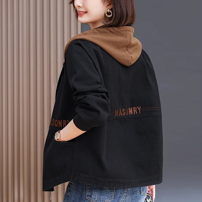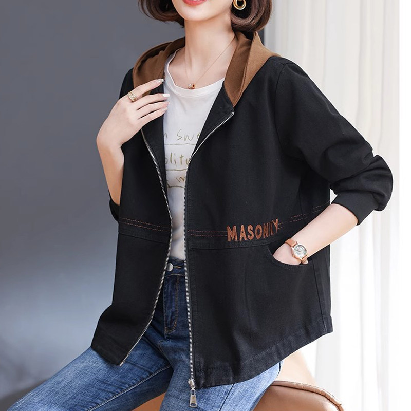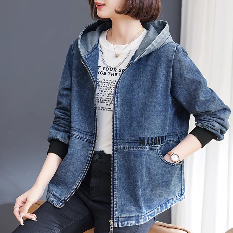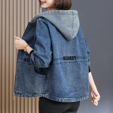 休闲连帽短款牛仔外套女春秋2025年新款中年妈妈宽松百搭大码夹克