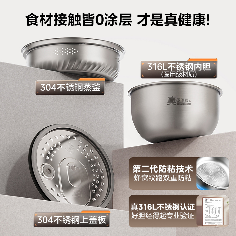 美的0涂层电饭煲家用IH大容量多功能无涂层不粘稻香低升糖电饭锅