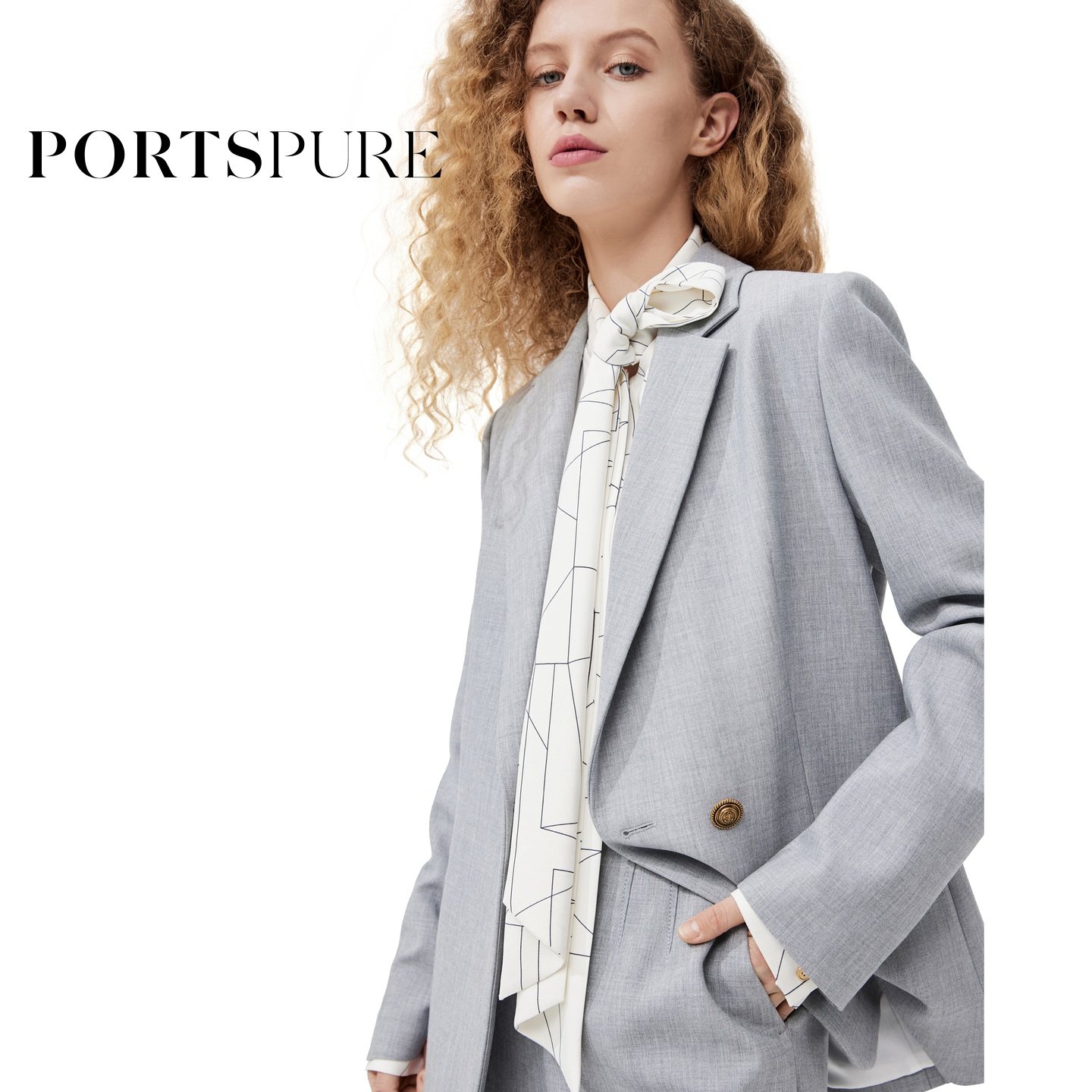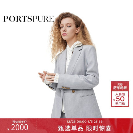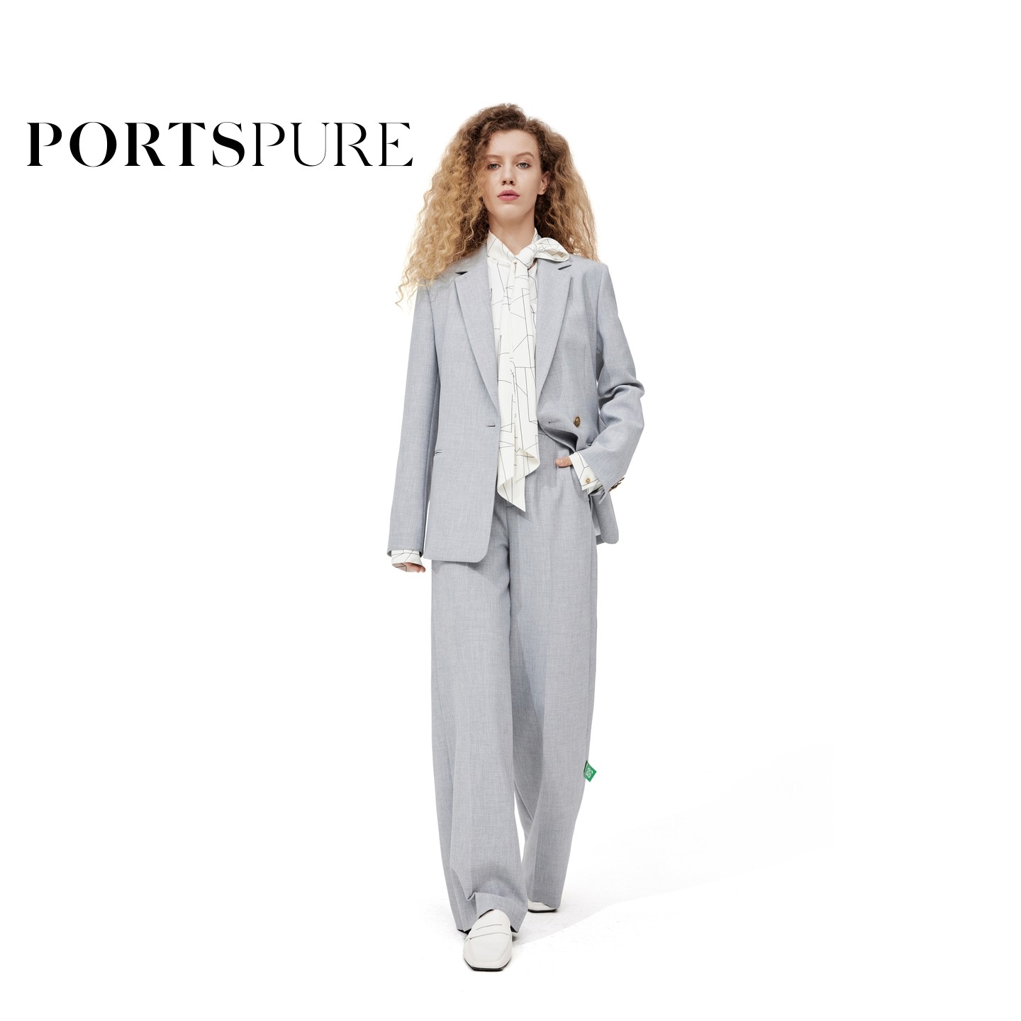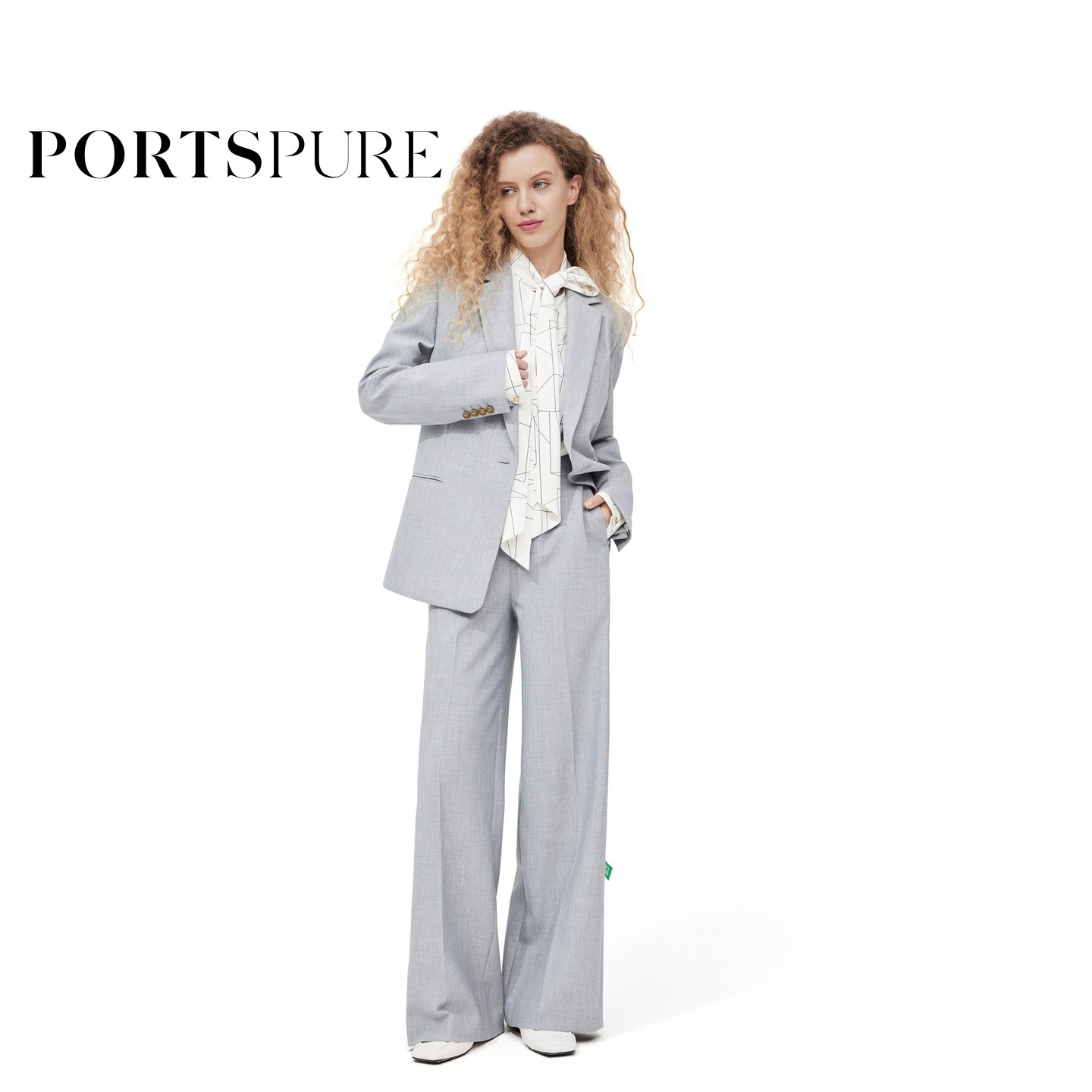 【博主同款】宝姿PORTSPURE女装春秋单扣休闲格雷系优雅通勤西装