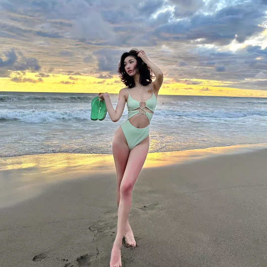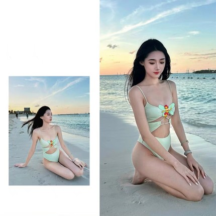 网红同款泳衣女性感辣妹镂空吊带连体比基尼小胸聚拢显瘦遮肚泳装