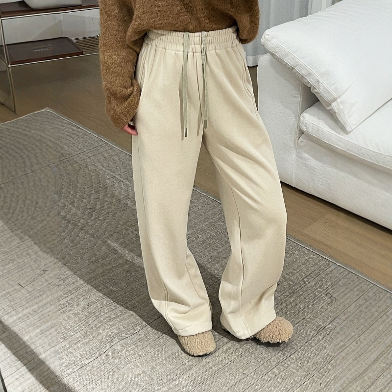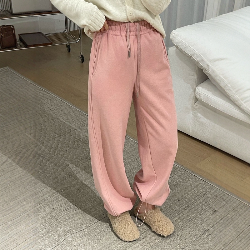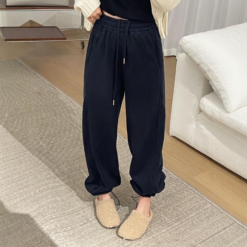 花灰色阔腿卫裤女加绒加厚运动裤