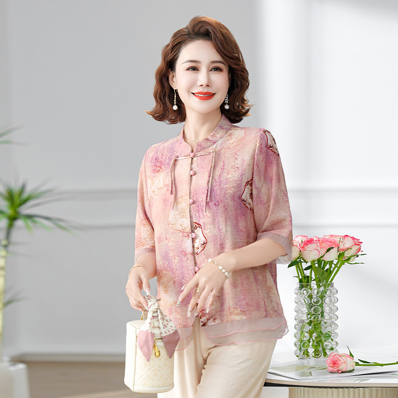 妈妈装夏装短袖国风打底衫开衫女