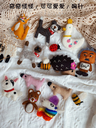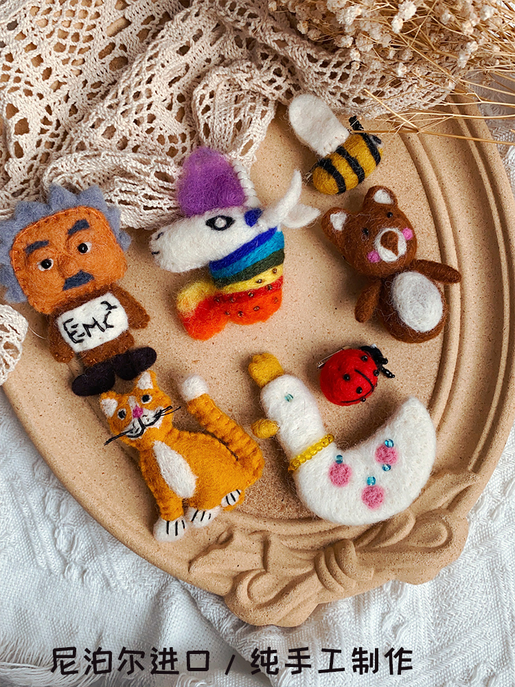 多款尼泊尔手工小动物羊毛毡童趣可爱胸针别针围巾答疑包包配饰