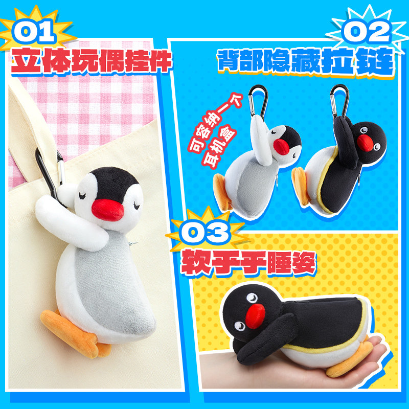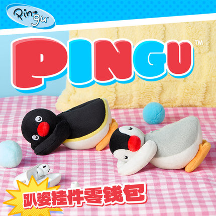 KKV正品Pingu趴姿挂件收纳零钱包耳机包可爱吊饰玩偶包包挂饰