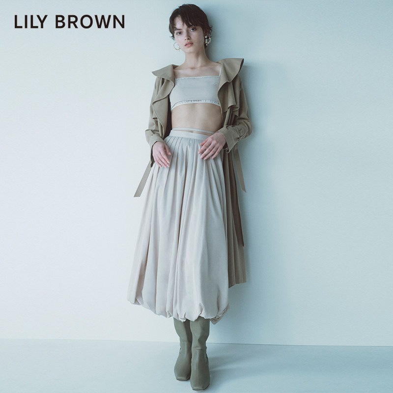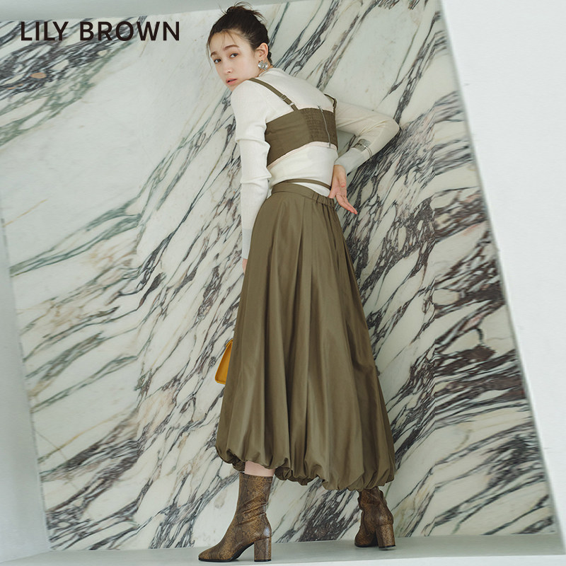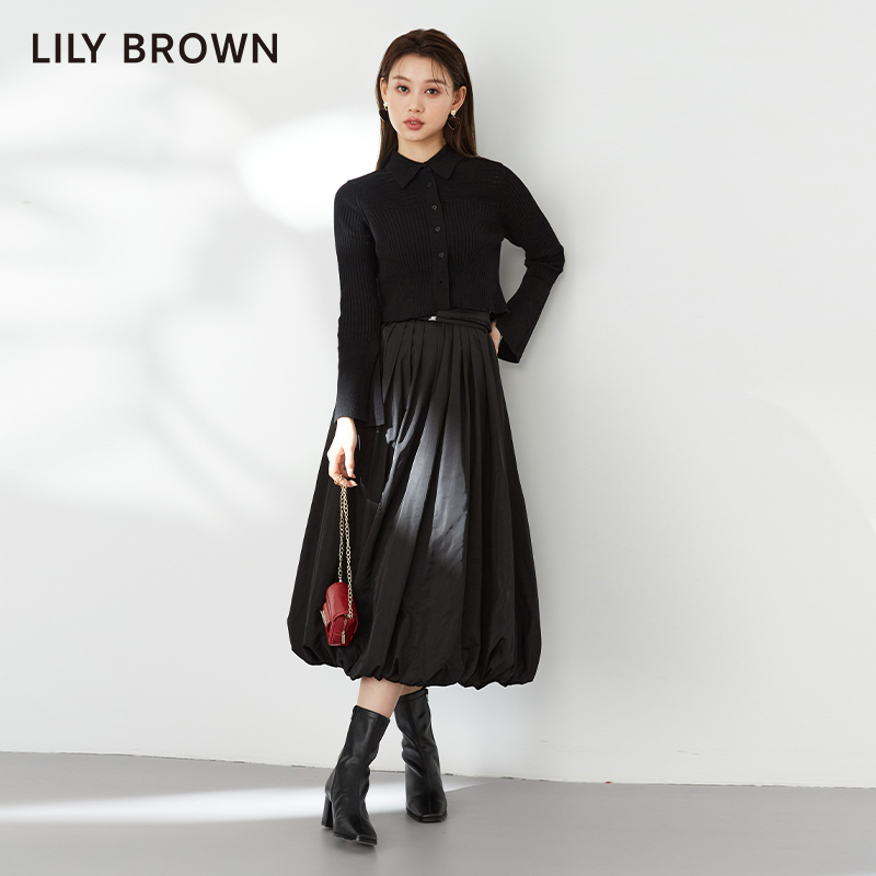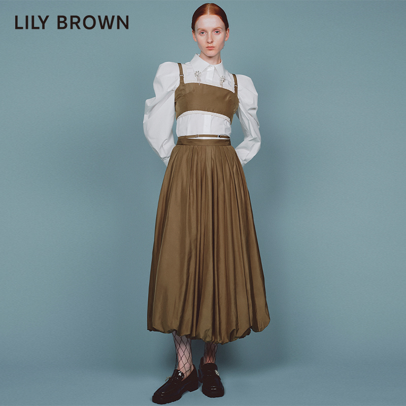 LILY BROWN秋冬款 纯色高腰细带百褶灯笼半身裙LWFS234114