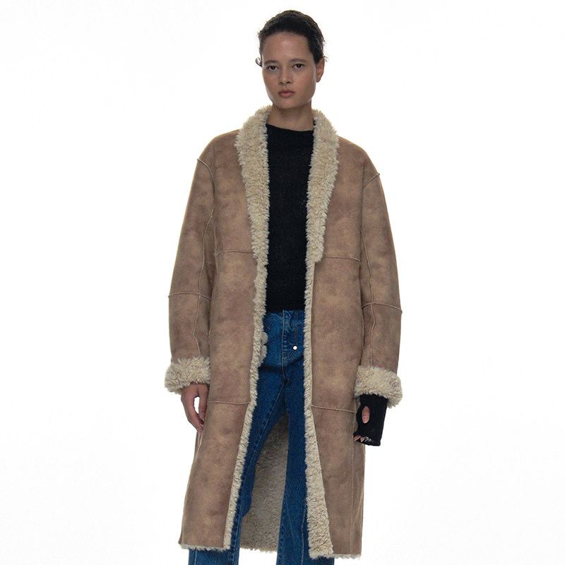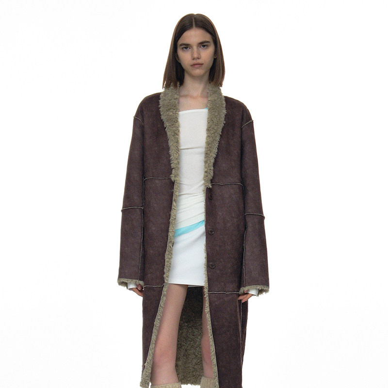 韩国正品 PARTIMENTO 2024年冬季女装新款休闲双面穿长款毛呢大衣