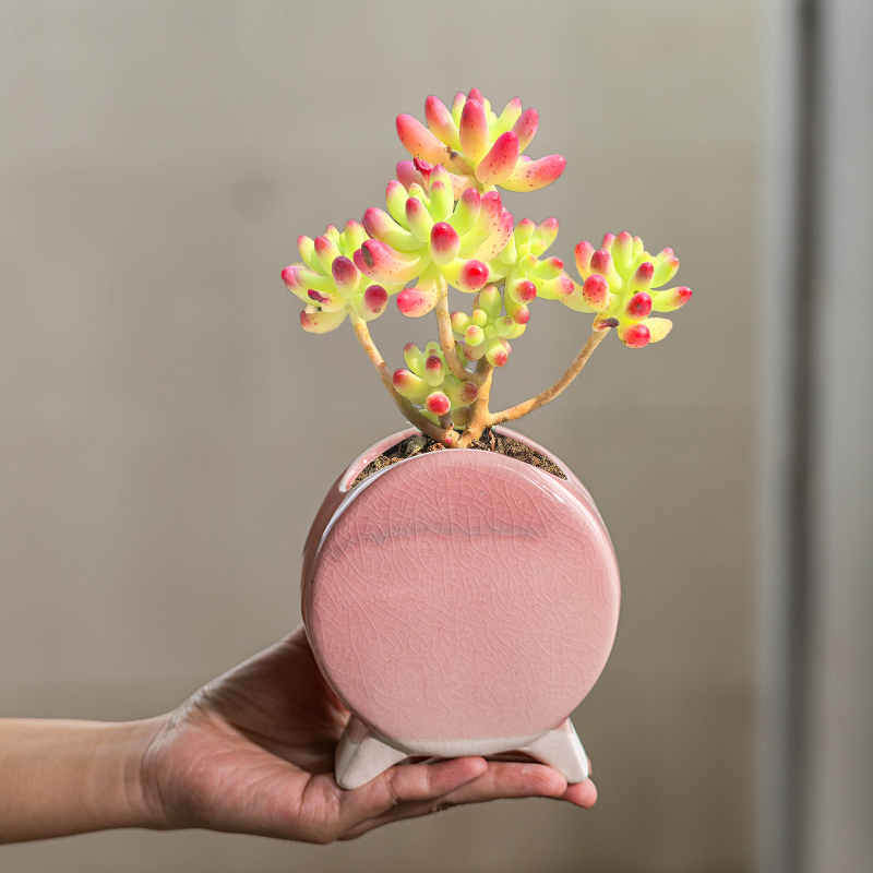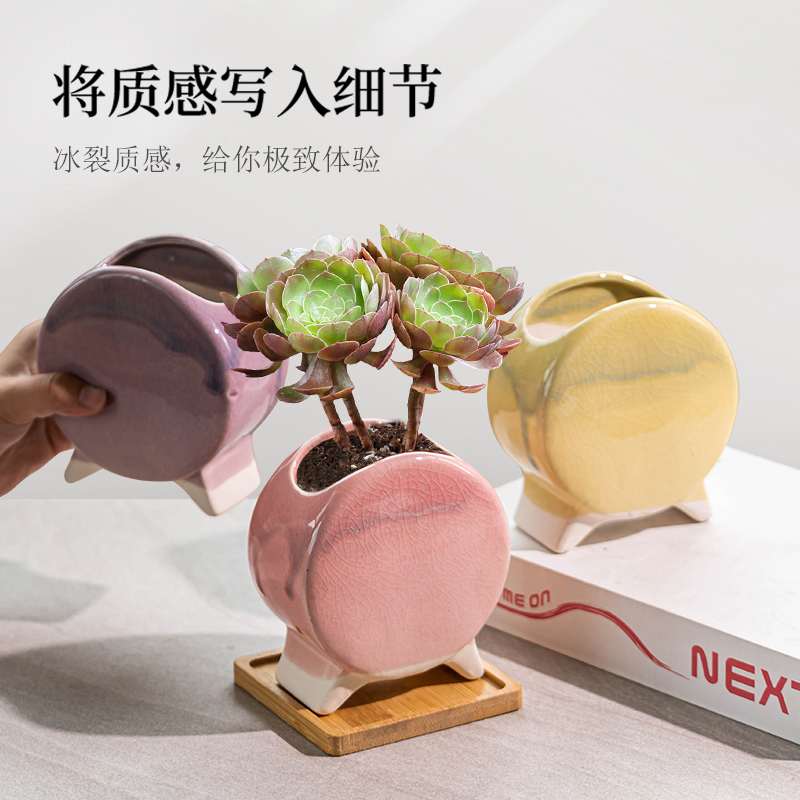 多肉花盆冰裂釉装饰盆个性钟鼓形陶瓷花器透气带脚肉肉植物小摆件