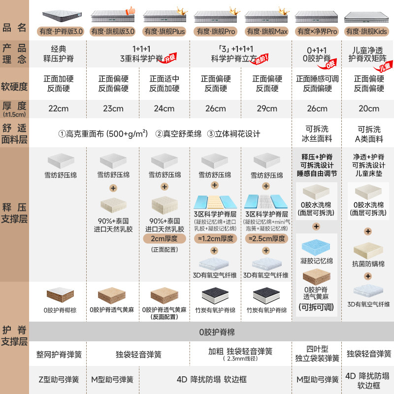 雅兰有度镇店爆款黄麻护脊床垫