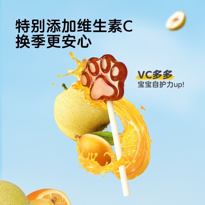 赫尔仕康秋梨膏枇杷VC棒棒糖无添加宝宝健康零食儿童营养糖果桶装