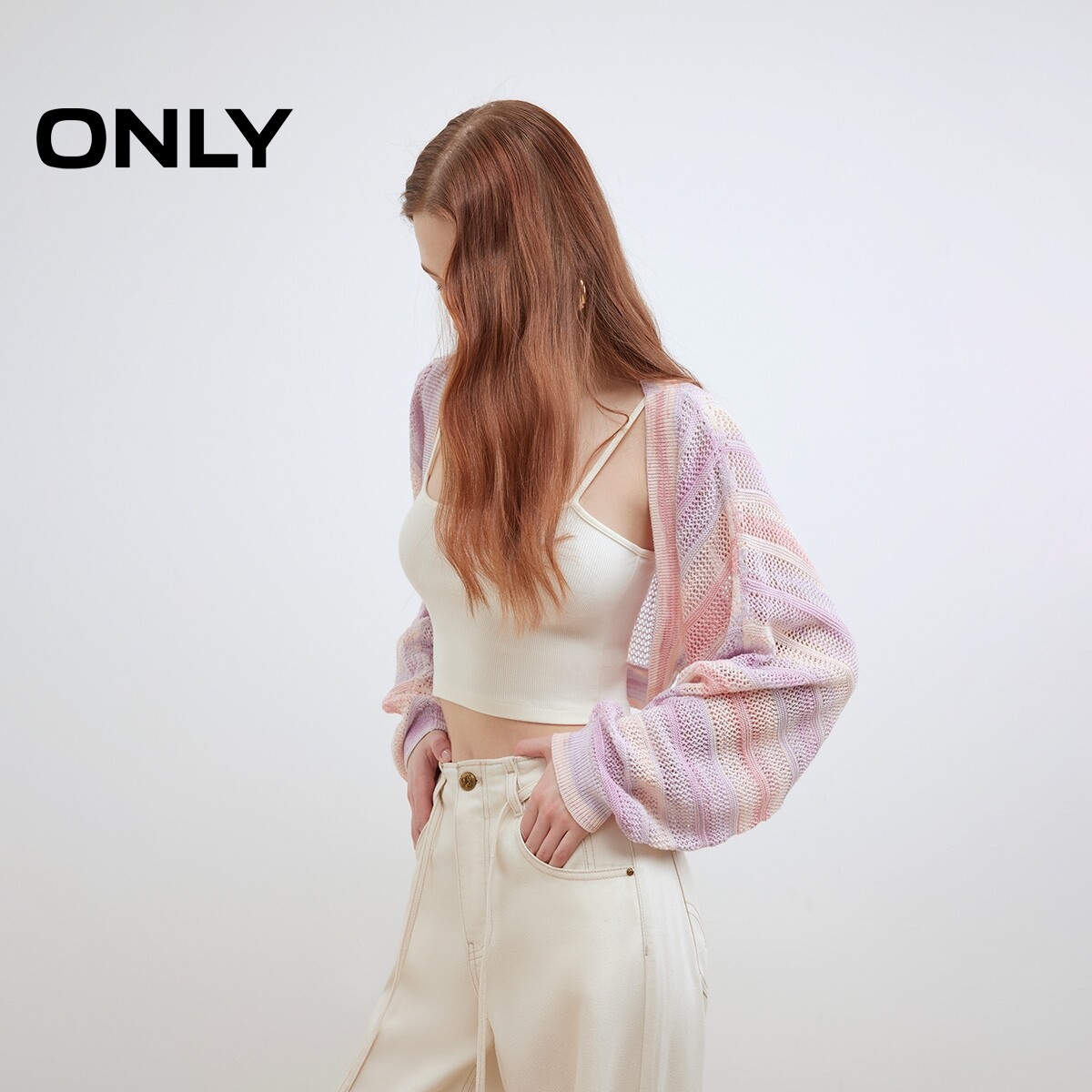ONLY2025秋冬新款蝙蝠袖宽松显瘦镂空轻薄短款开衫罩衫针织衫女