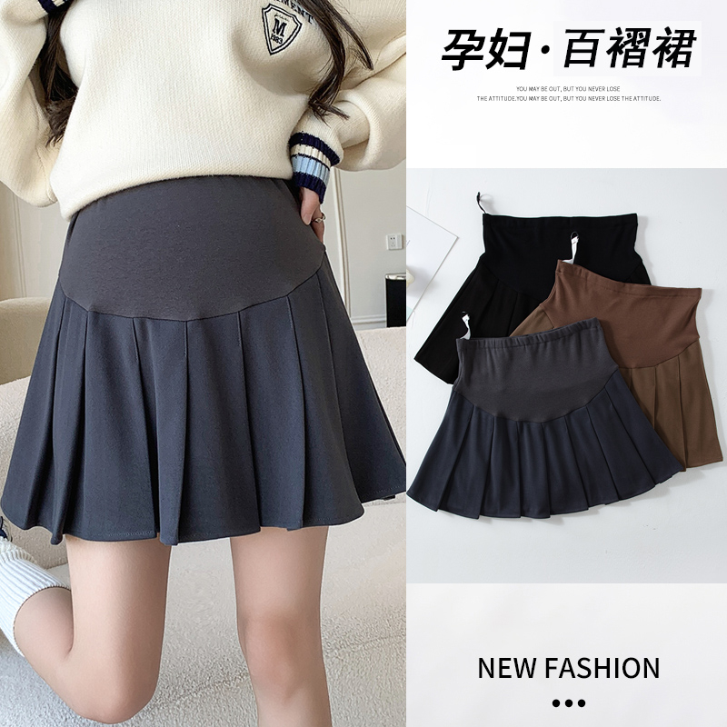 孕妇毛呢百褶半身裙短裙秋冬外穿时尚韩系减龄学院风托腹半身裙子