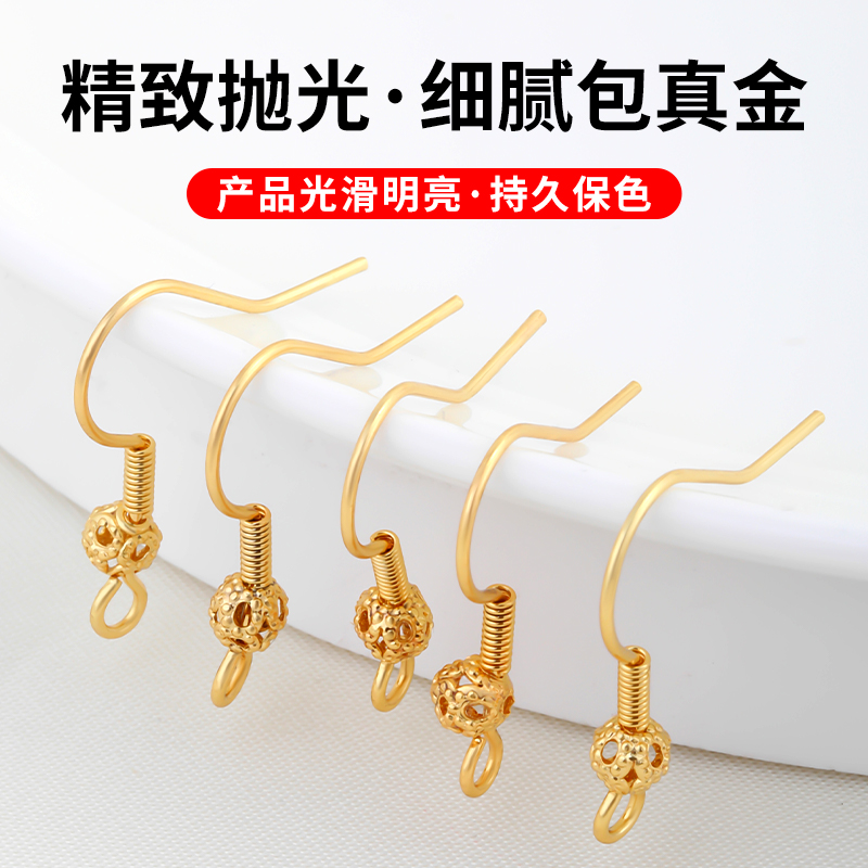 包18K金耳钩配件高保色diy自制珍珠耳环空托防过敏耳勾耳饰品材料