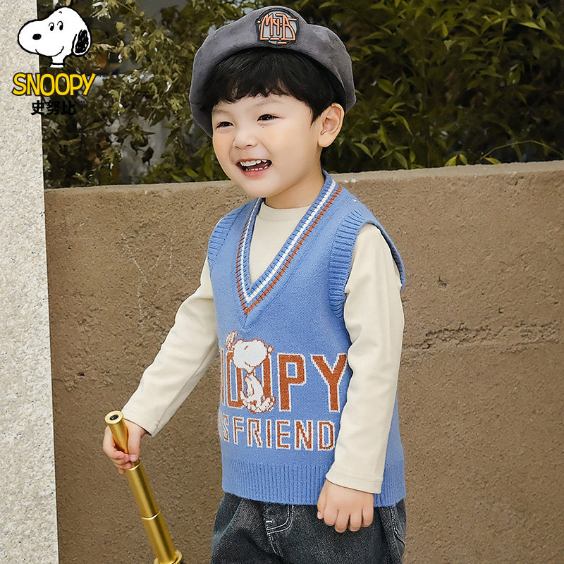 史努比儿童秋冬上衣针织马甲休闲风外穿坎肩男童女童
