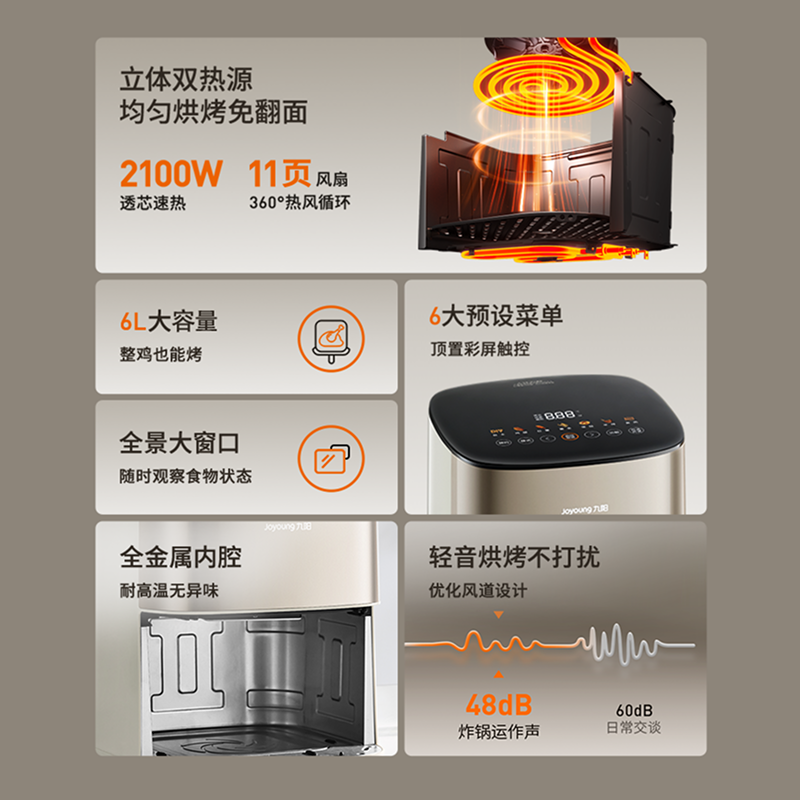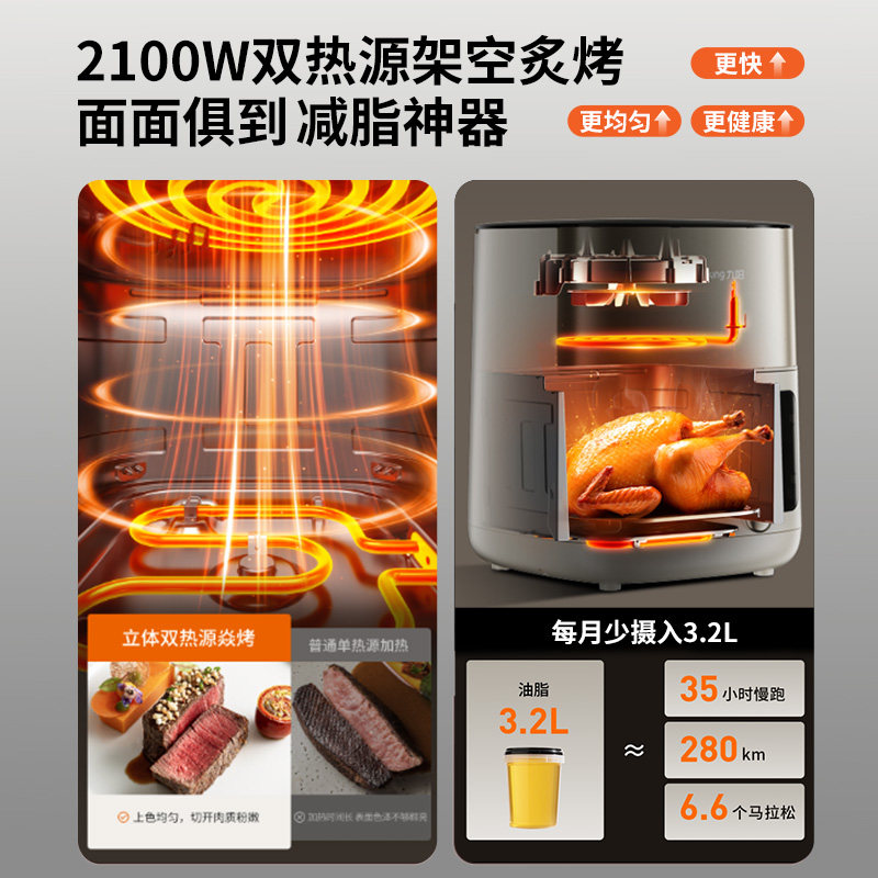 九阳空气炸锅家用新款大容量可视免翻面电炸锅多功能电烤箱烹饪机