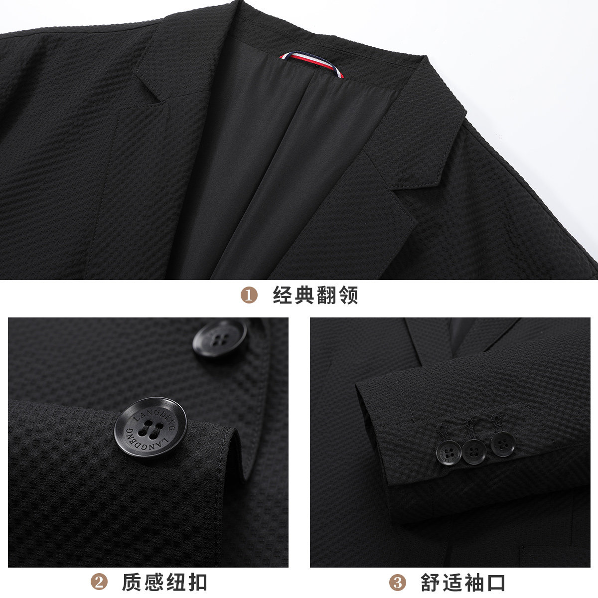 浪登商务休闲单西可机洗黑色西装