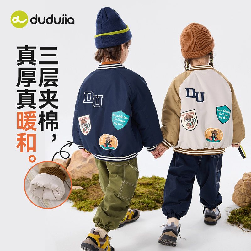 嘟嘟家男童学院棉服冬季新款儿童三层夹棉外套女孩宝宝保暖棒球服