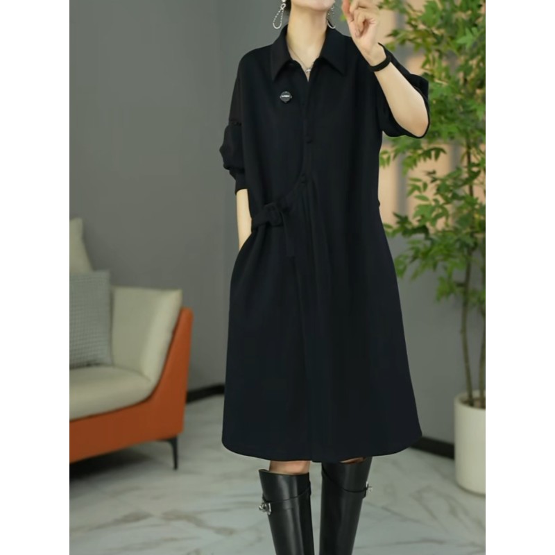 慵懒端庄大气欧版宽松连衣裙女2025秋冬季新款修身显瘦中长款裙子