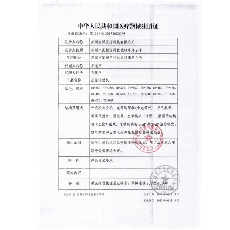 鱼跃单水平全自动呼吸机YH-660医用正压无创仪家用打呼噜打鼾