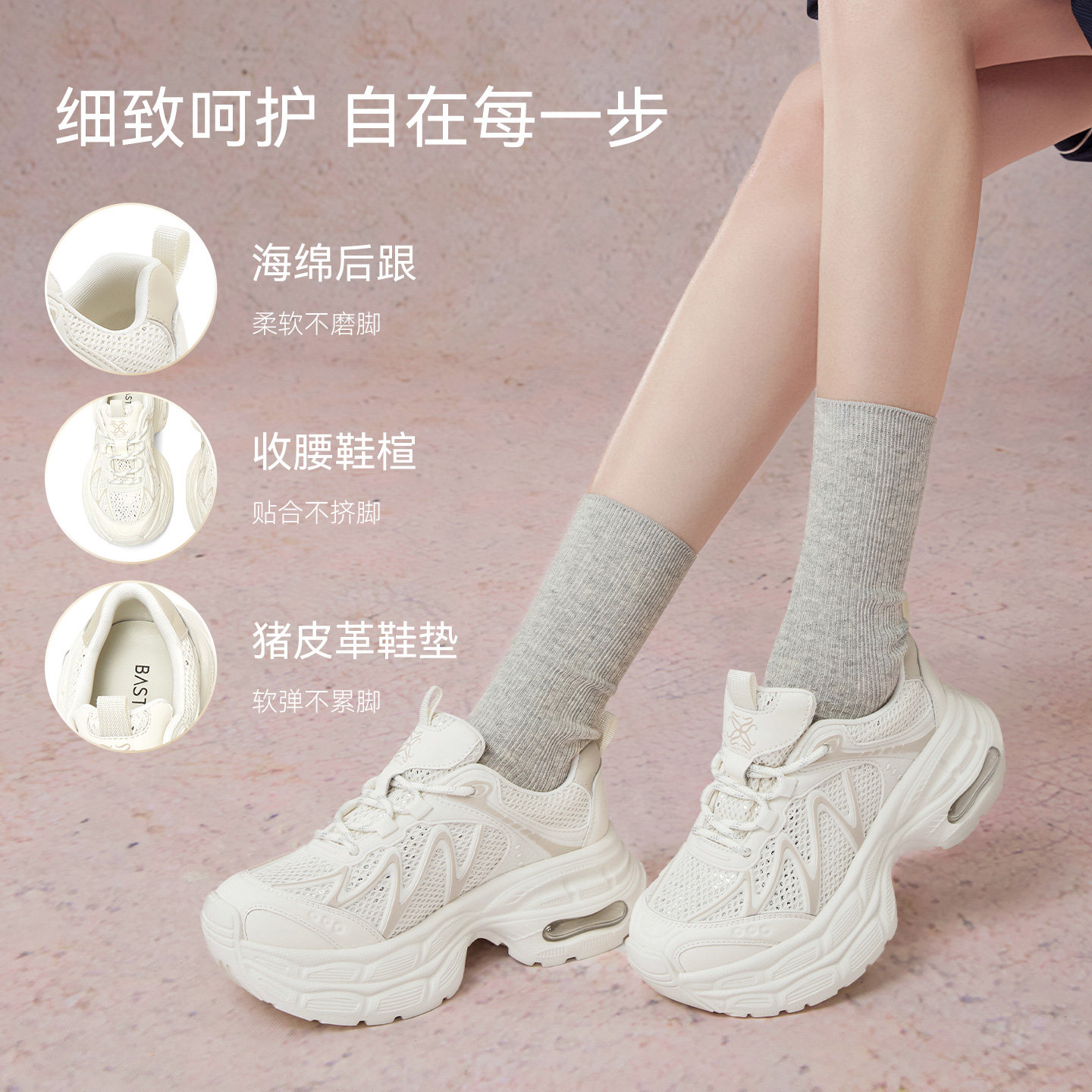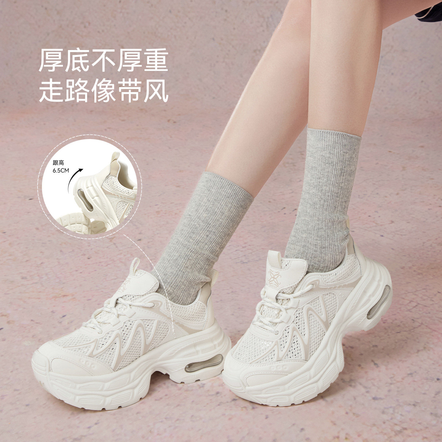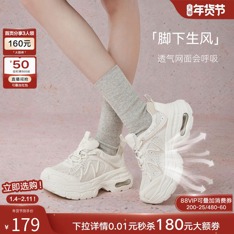 百思图2025秋季新款潮酷网面透气老爹鞋厚底女休闲运动鞋G5055CM5