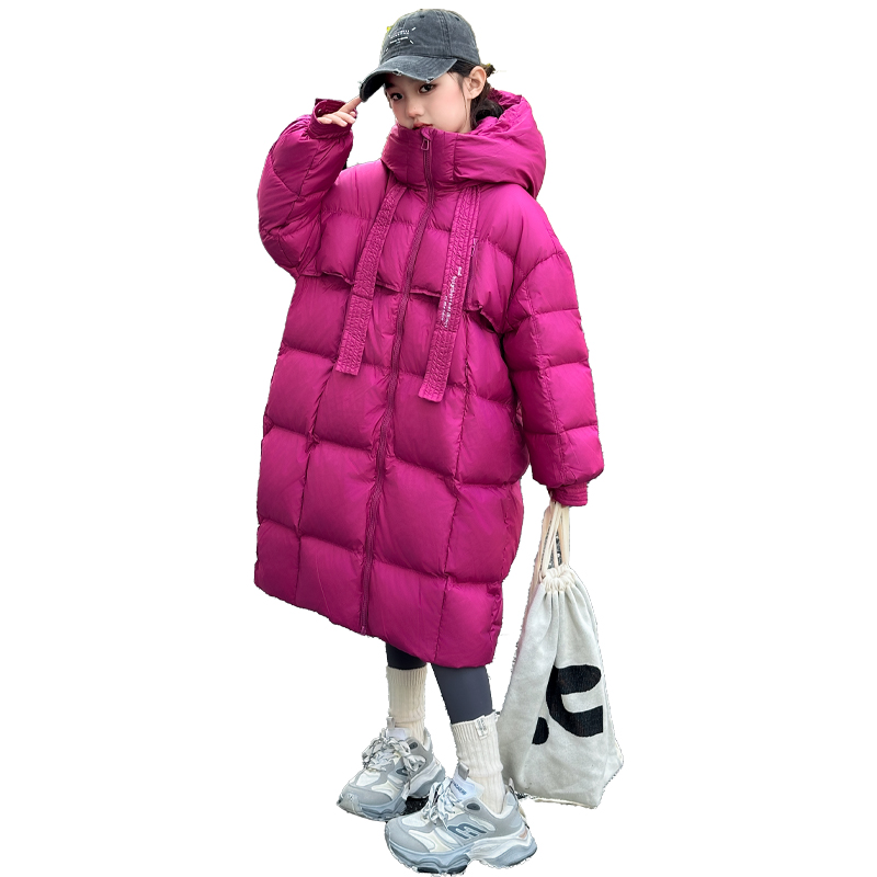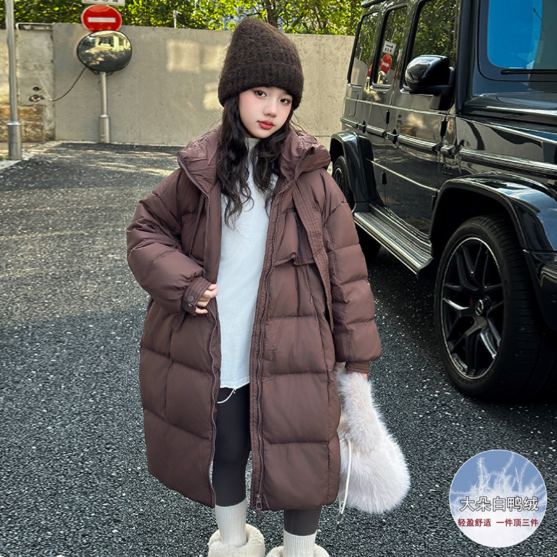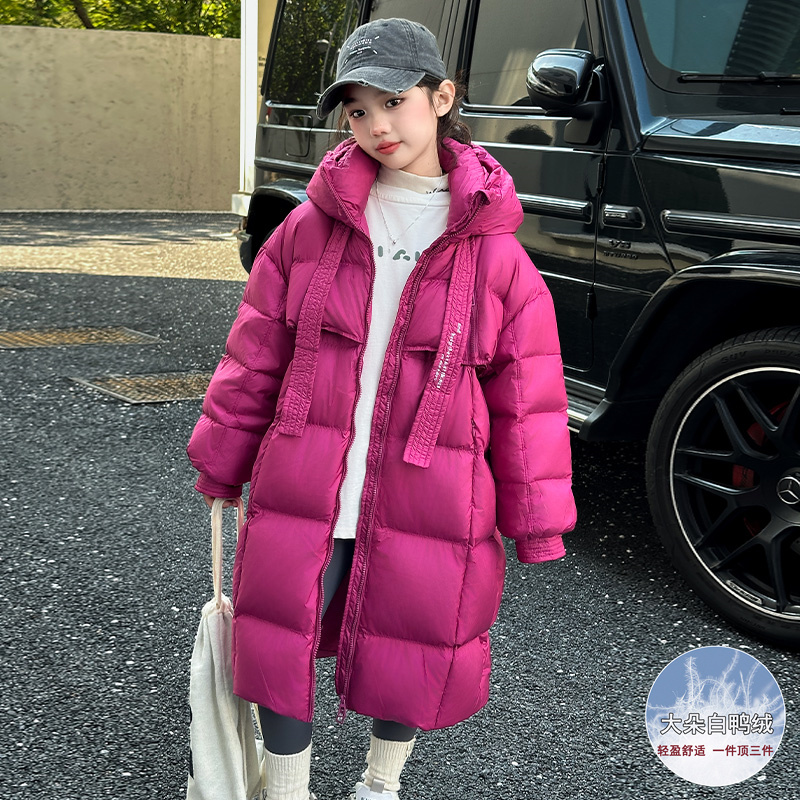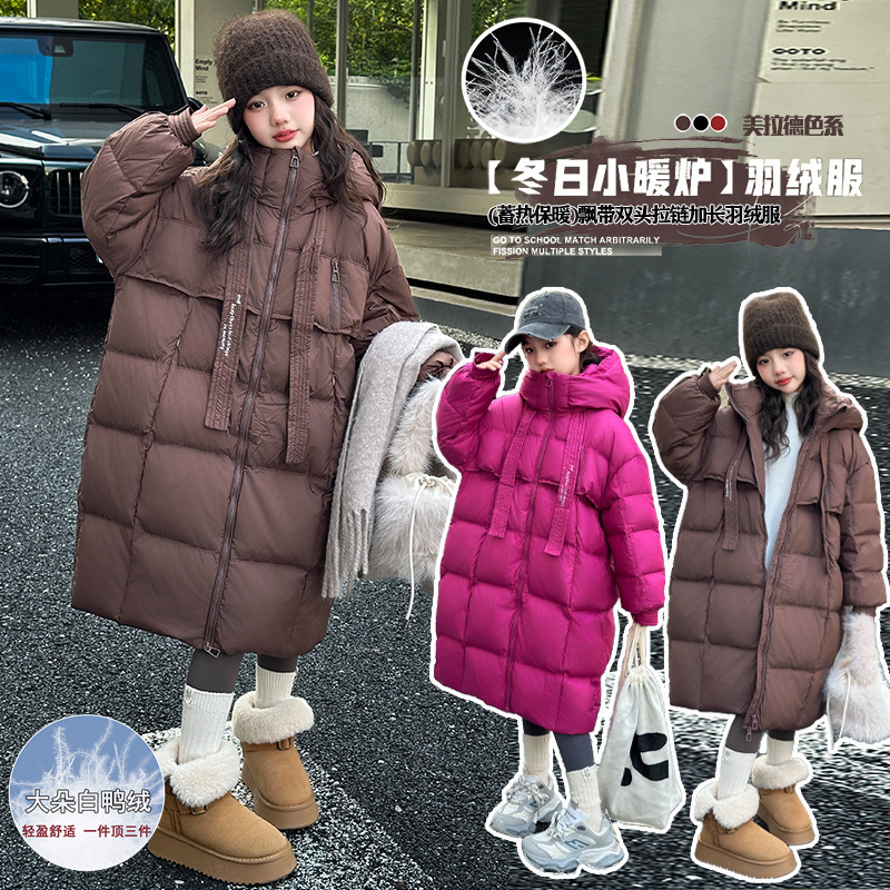女童羽绒服2025冬季新款女大童洋气时髦过膝长款白鸭绒加厚外套潮