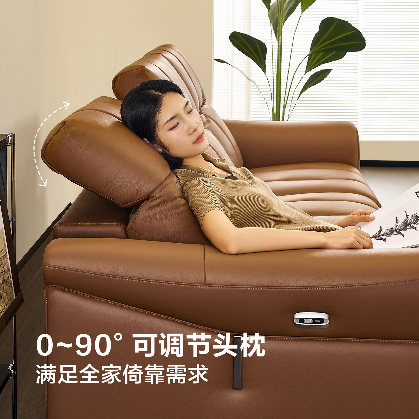 全友家居现代简约头层牛皮直排沙发2025新款多功能电动真皮沙发