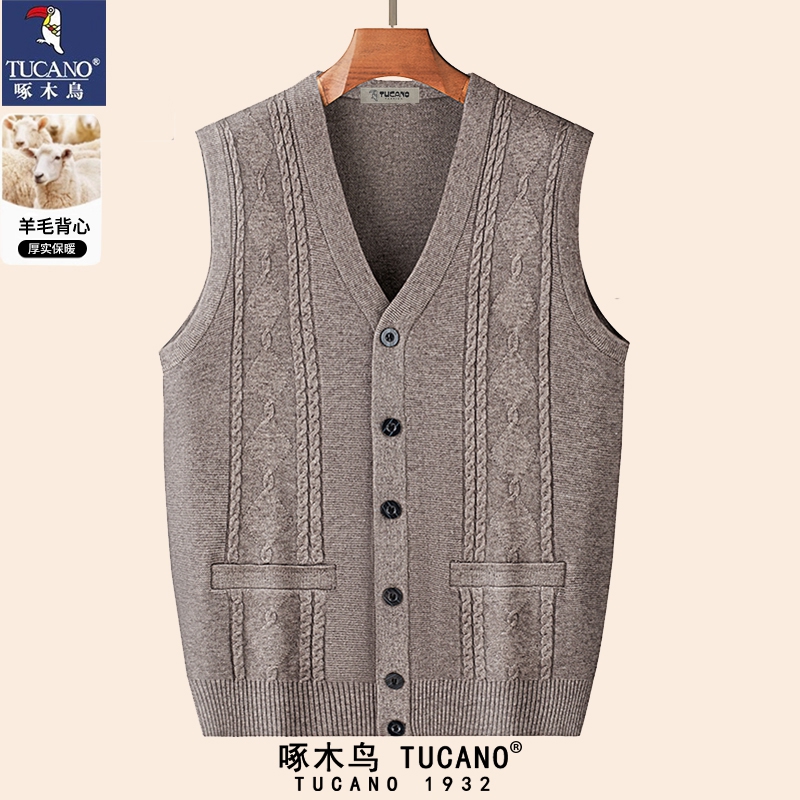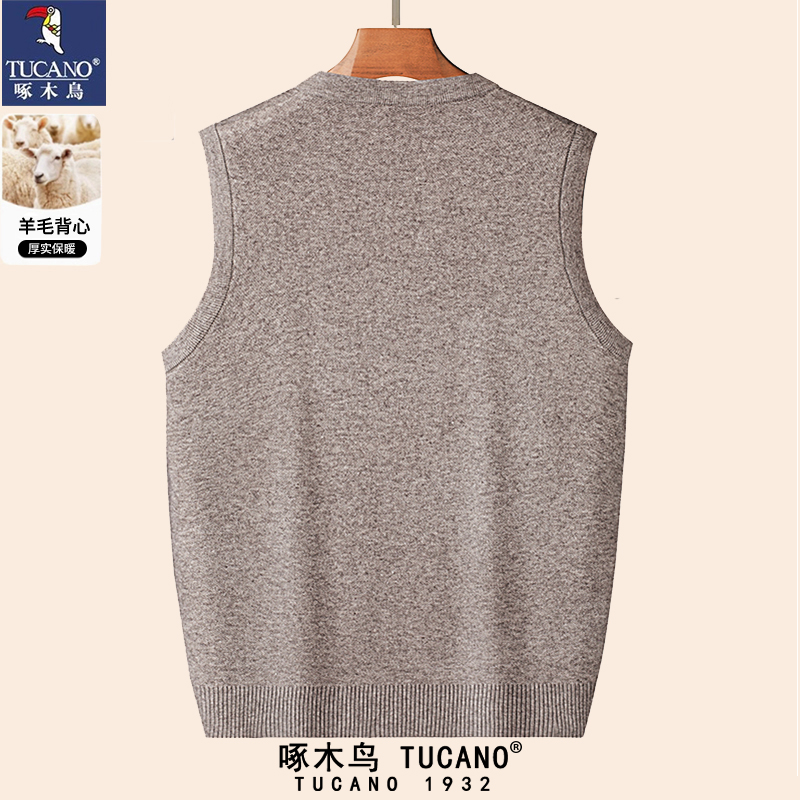 啄木鸟春秋款V领男士羊毛背心马甲加厚保暖开衫毛衣针织坎肩男装