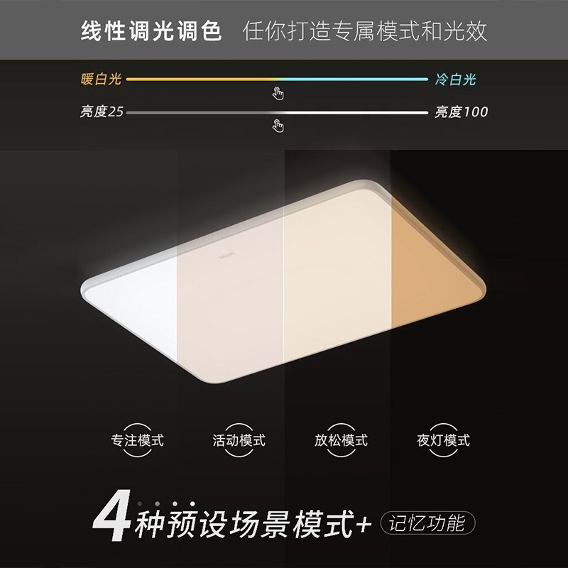 飞利浦方形卧室吸顶灯遥控操作
