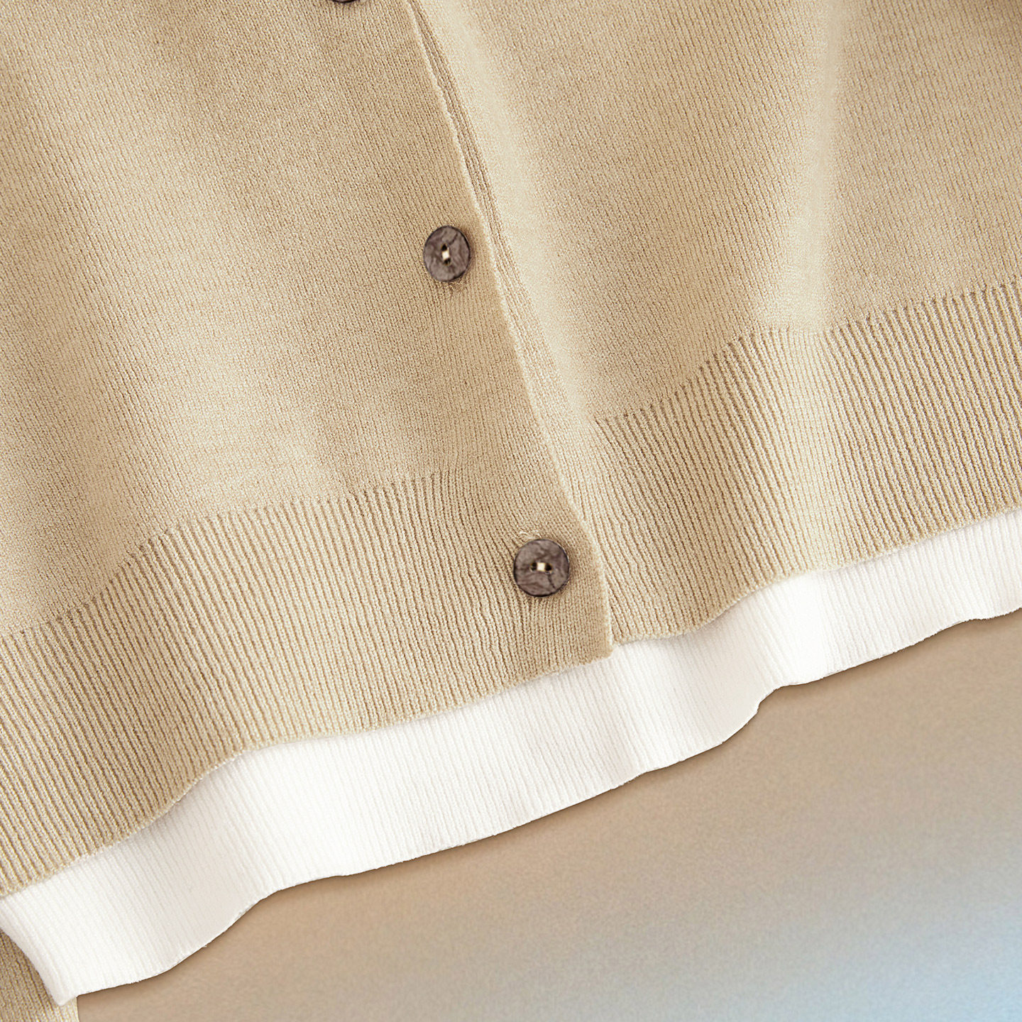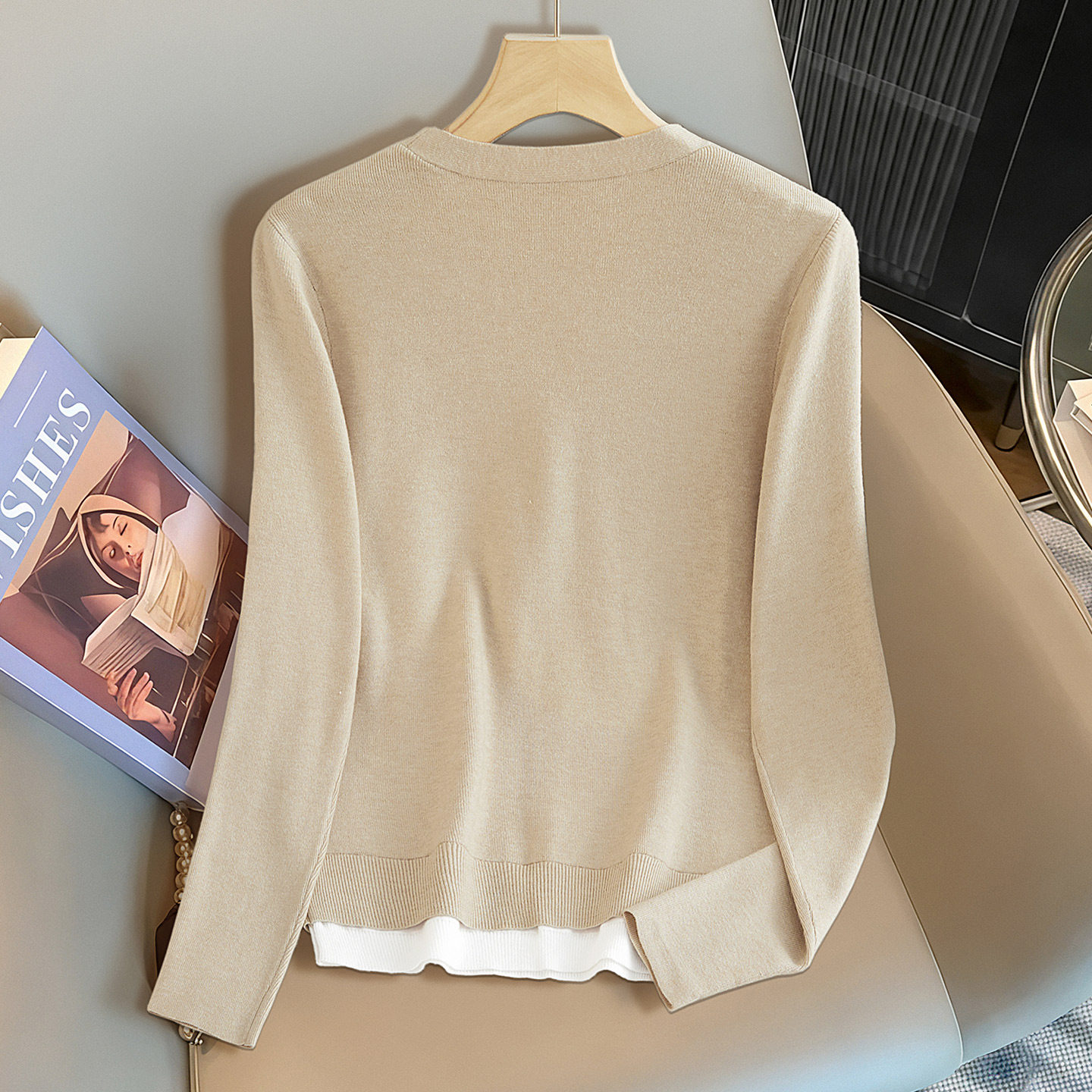 她池假两件针织衫2026春装新款女装时尚撞色拼接修身正肩短款上衣