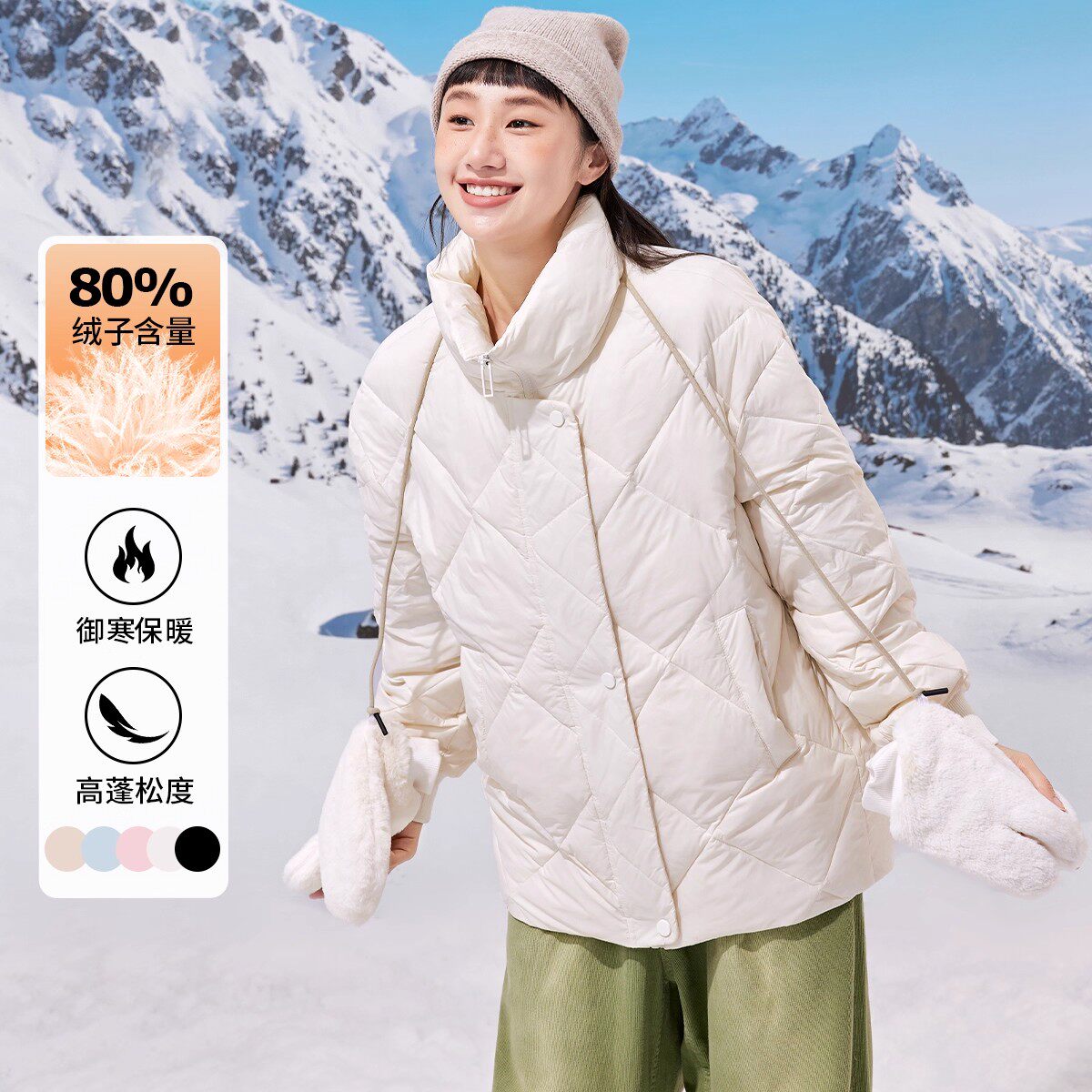 LBH真维斯小香风羽绒服女2025冬季新款保暖宽松立领菱格外套女士