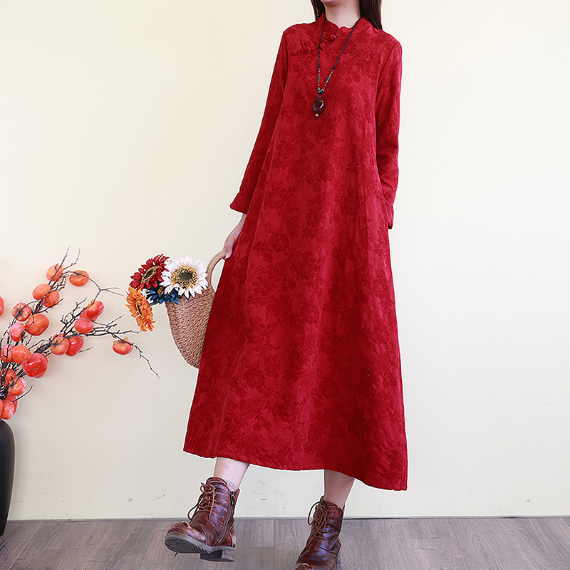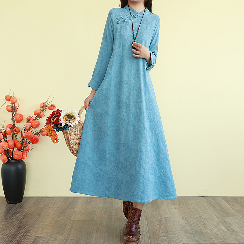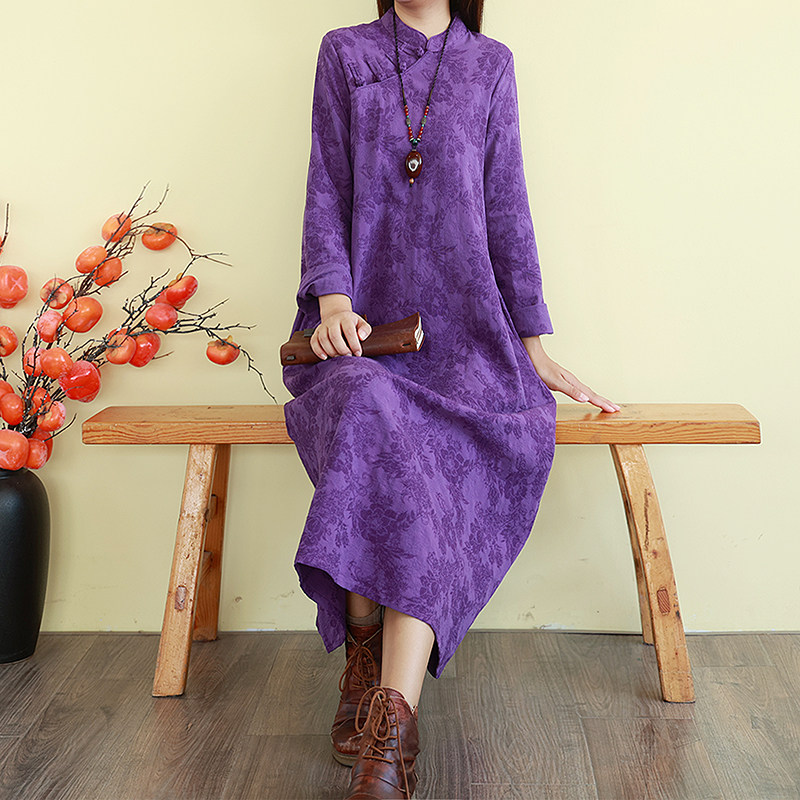 复古改良旗袍连衣裙亚麻棉春季长款过膝刺绣厂裙子宽松麻料中国风