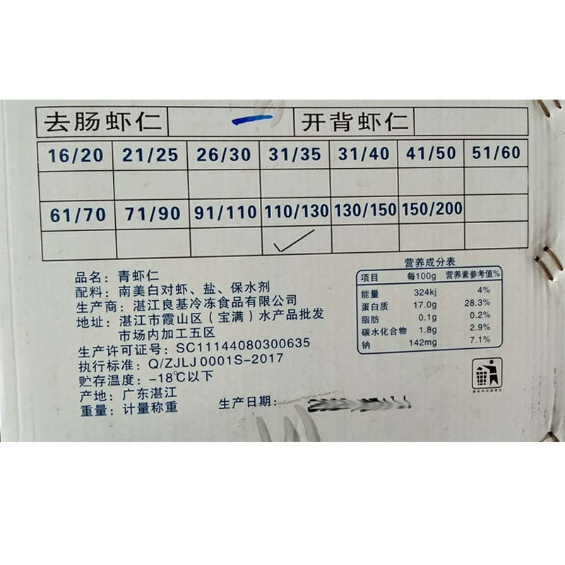 单冻青虾仁 冷冻110/130虾仁鲜冻南美活剥水晶小虾仁广东包邮商用
