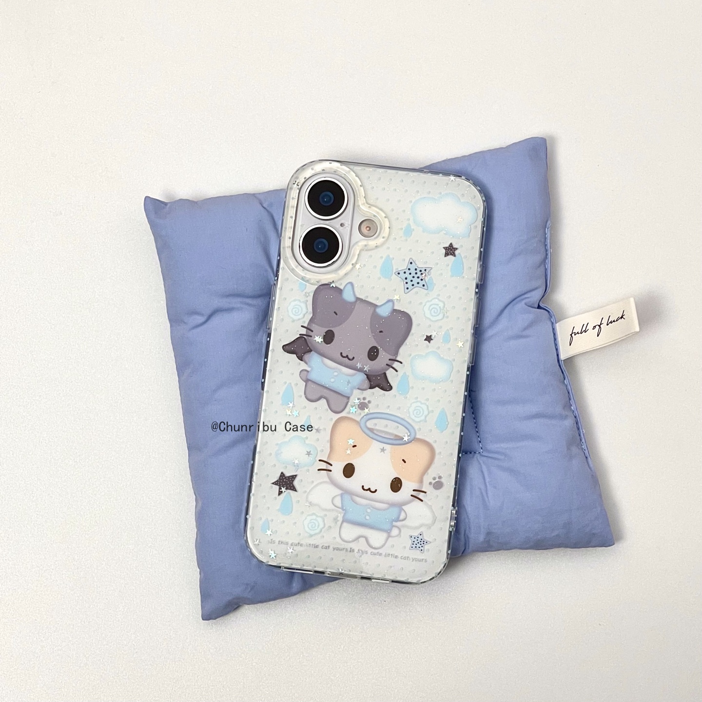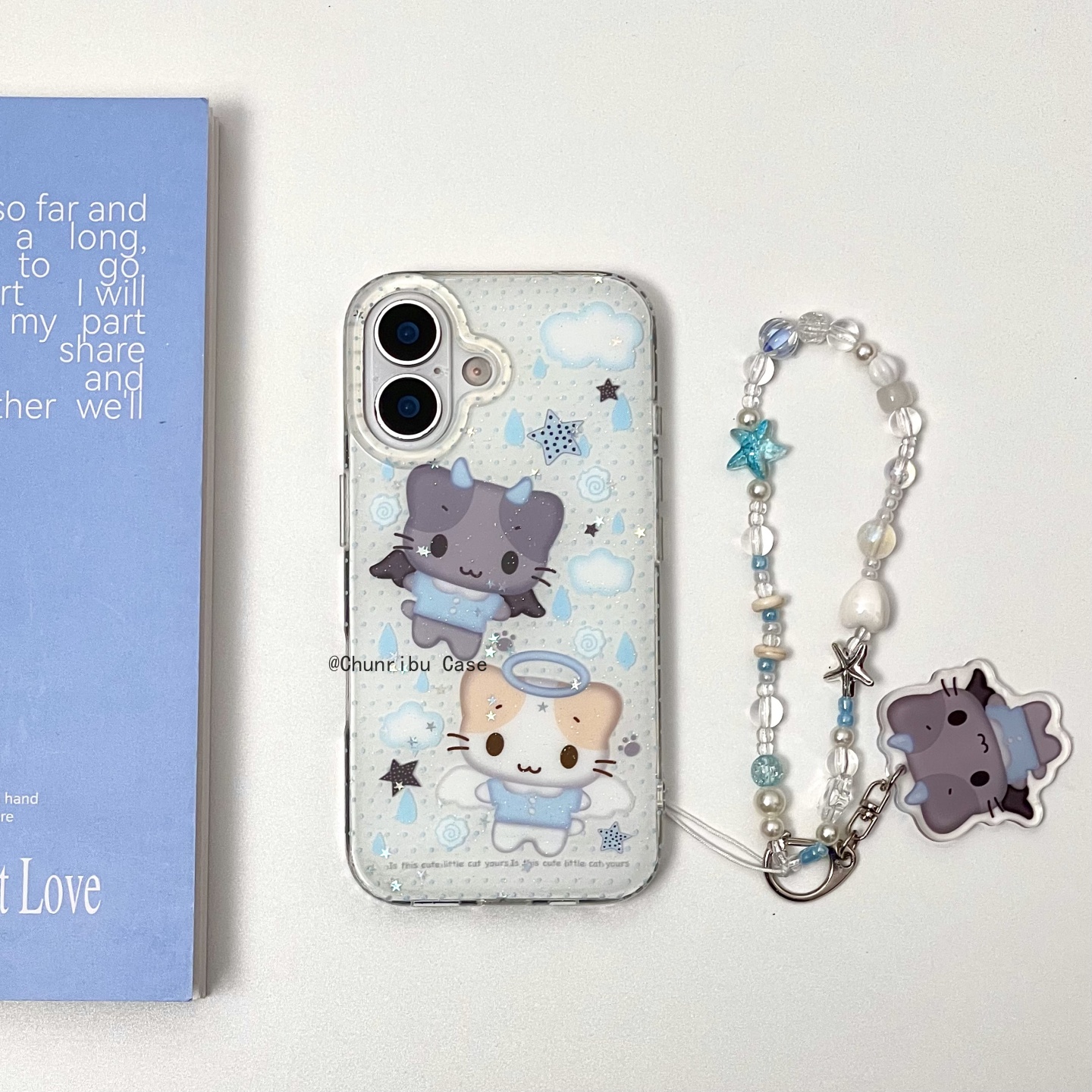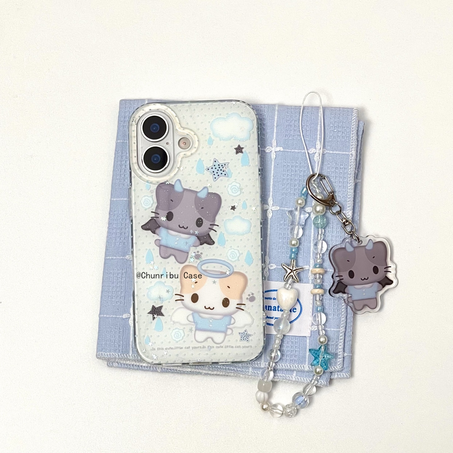春日部防卫队Fighting|可爱卡通小天使恶魔棉花糖猫苹果适用苹果16promax手机壳日韩古早挂绳iphone15/14/13