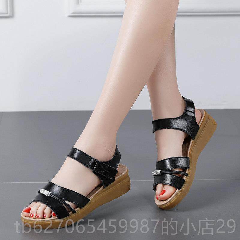 正品凉鞋女夏2新023款真皮平底鞋百搭中坡舒适防滑外穿跟妈妈孕妇