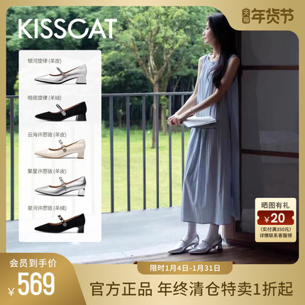 KISSCAT接吻猫[心动信号]秋季新款尖头粗跟单鞋新中式玛丽珍女