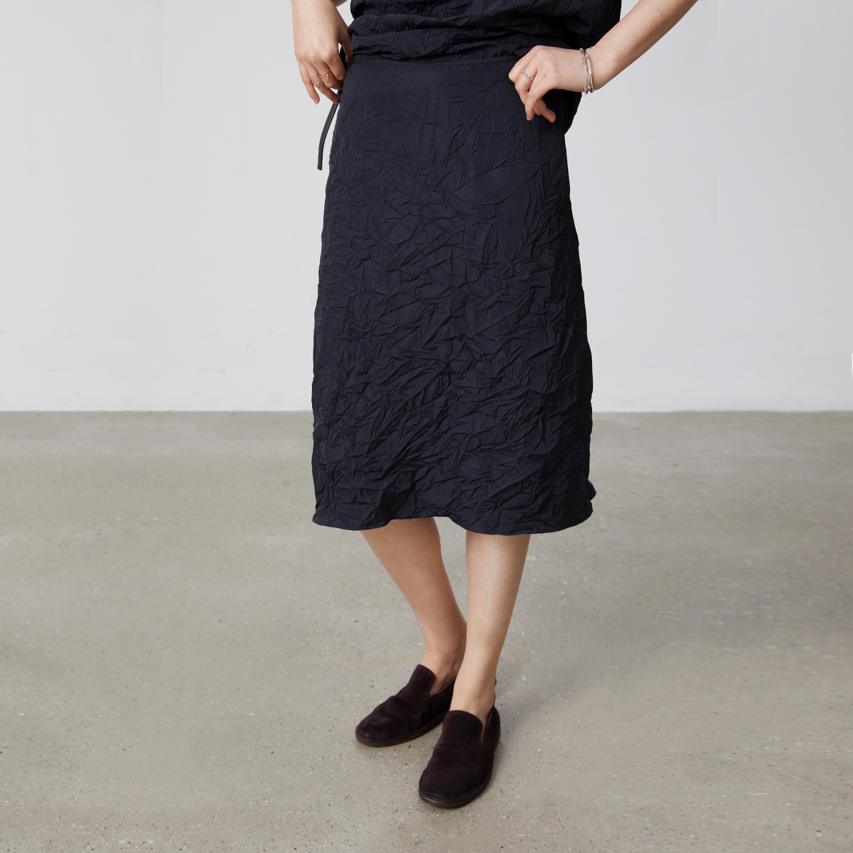 杲果GAOGUO 春夏日本进口褶皱肌理藏青后开衩运动风潮半身裙膝裙