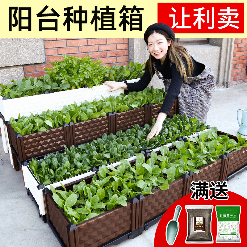 新品种植箱种菜神器家庭阳台长方形花盆阳台塑料家用蔬菜加深特深