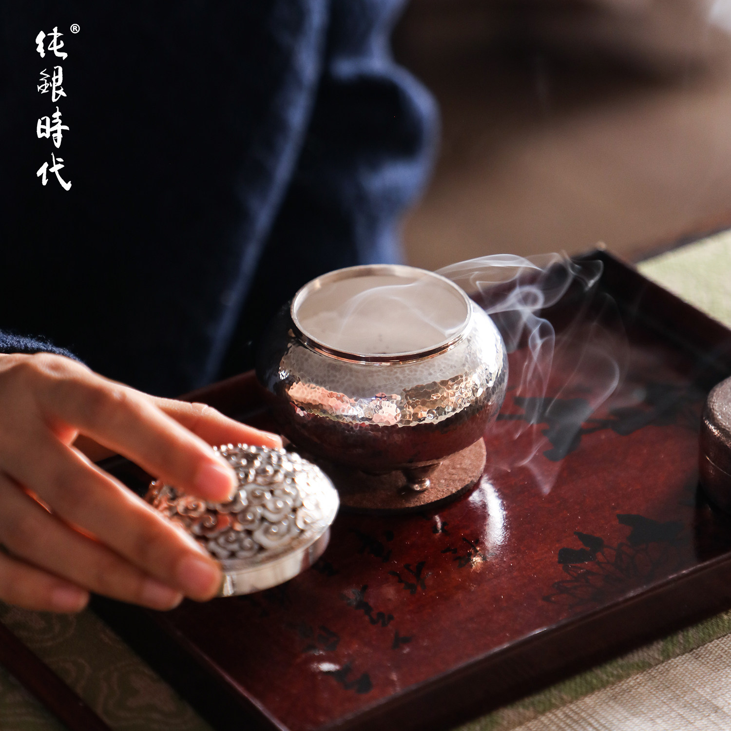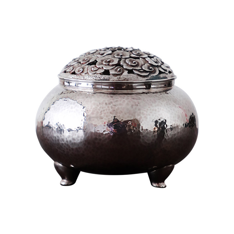 纯银时代 錾刻祥云香炉足银999纯手工香道雅器复古风雅收藏三足