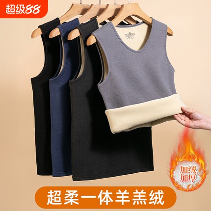 羊羔绒加绒加厚保暖背心男修身坎肩无袖T恤马夹内穿打底马甲冬季