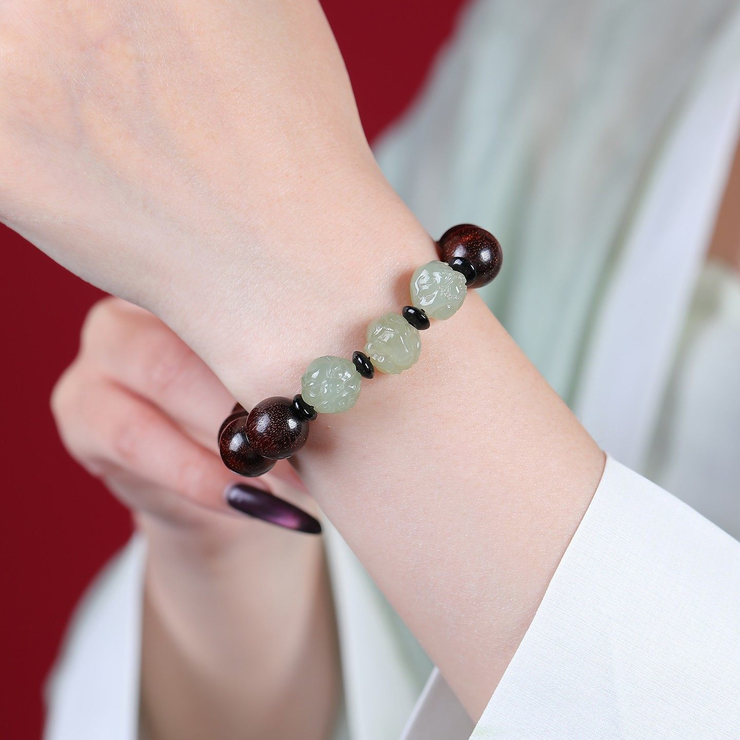 小叶紫檀手串三合和田玉转运珠