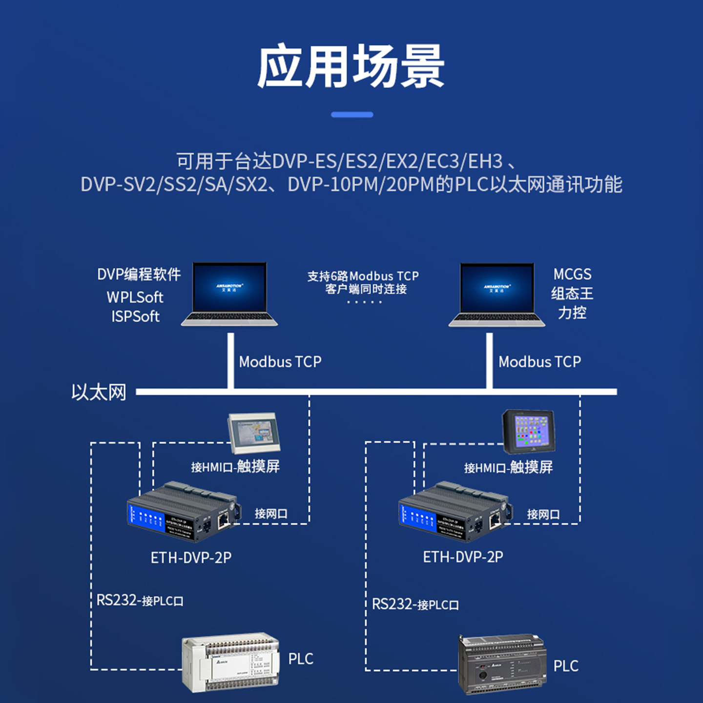 艾莫迅用于 西门子/三菱/台达/松下/信捷PLC串口转以太网通讯模快