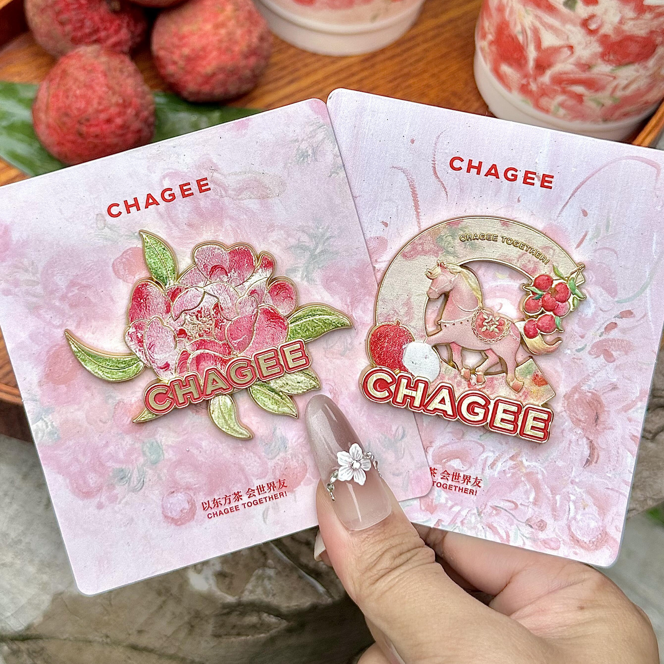 霸王茶姬荔枝限定荔红千里盛世浪漫徽章旅游纪念品文创周边