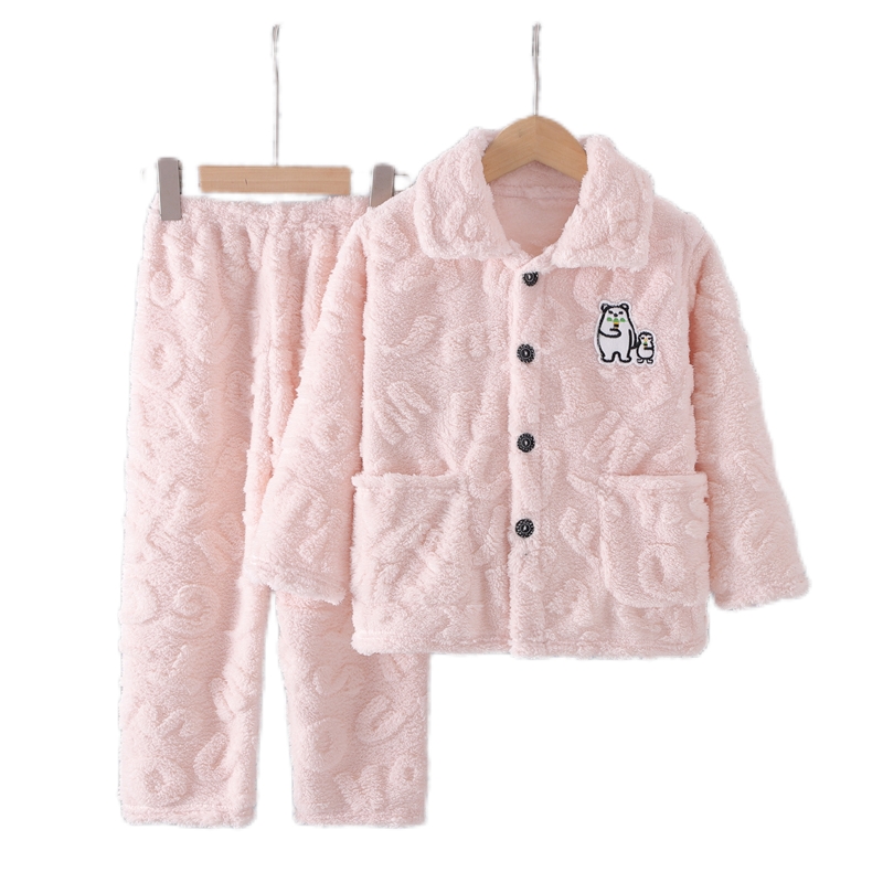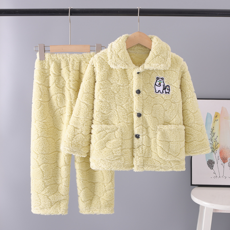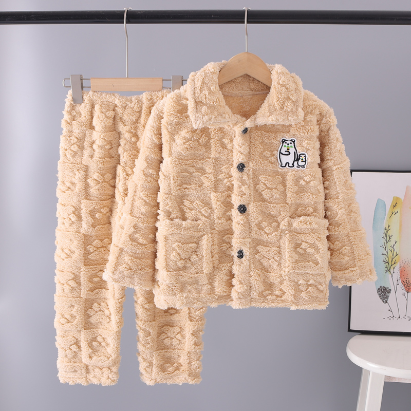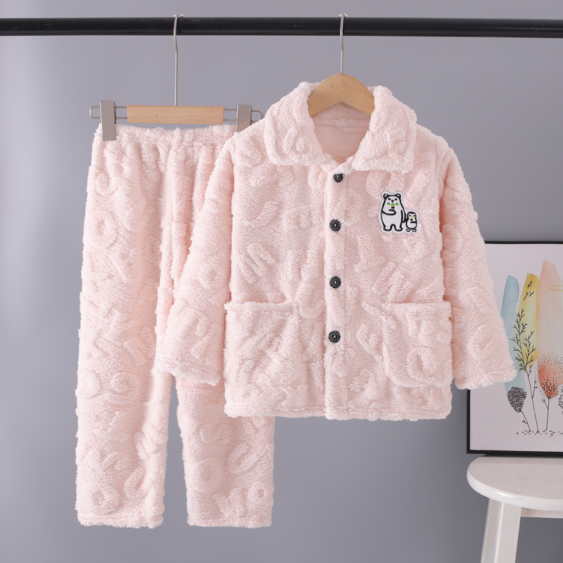 秋冬季儿童珊瑚绒睡衣男童加厚冬款法兰绒男孩家居服女童宝宝套装