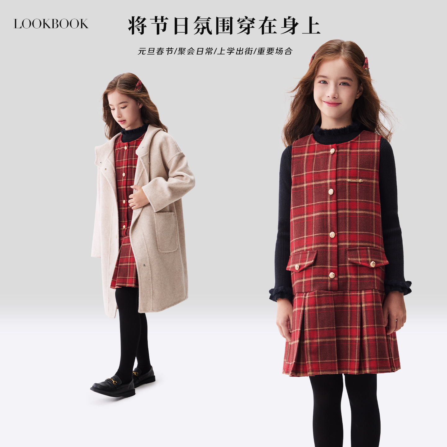 迪士尼女童红色连衣裙冬装新款儿童背心裙中大童新年装亲子拜年服
