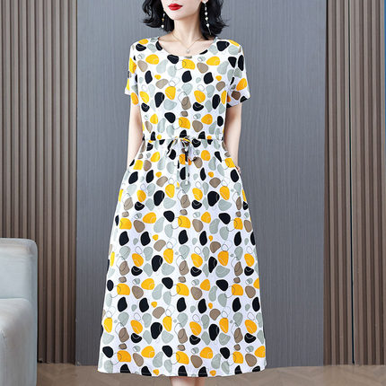 2026新款夏季上海棉绸连衣裙年轻款气质妈妈人造棉碎花小个子显瘦