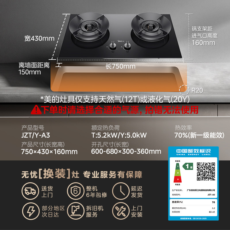 美的燃气灶煤气灶家用双灶A3天然气嵌入式灶台式液化气炉官方Q325