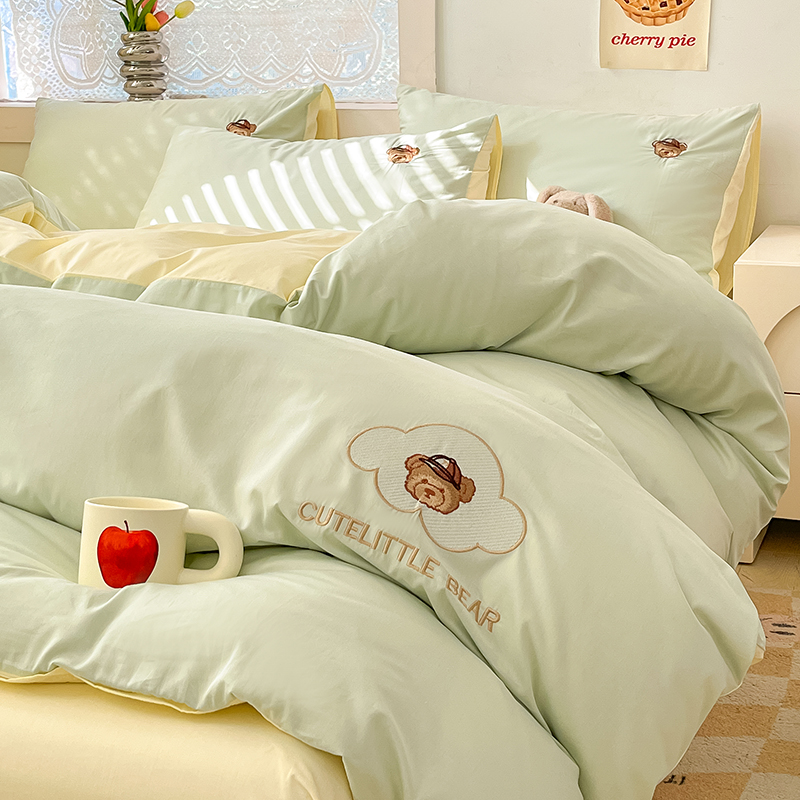 卡通风小熊100支长绒棉四件套可爱全棉纯棉刺绣被套床单床上用品4