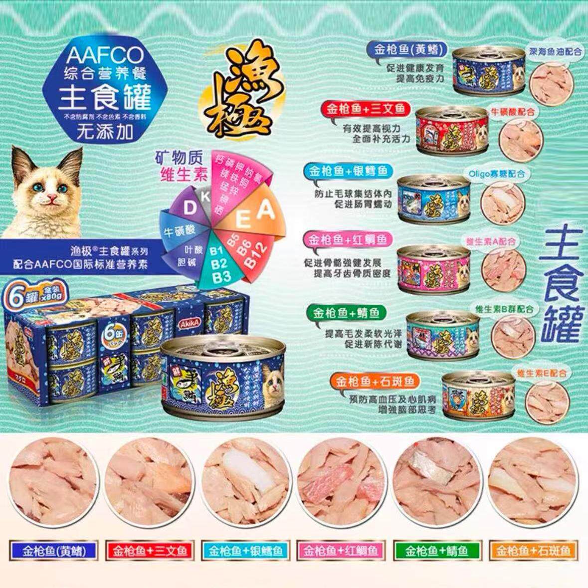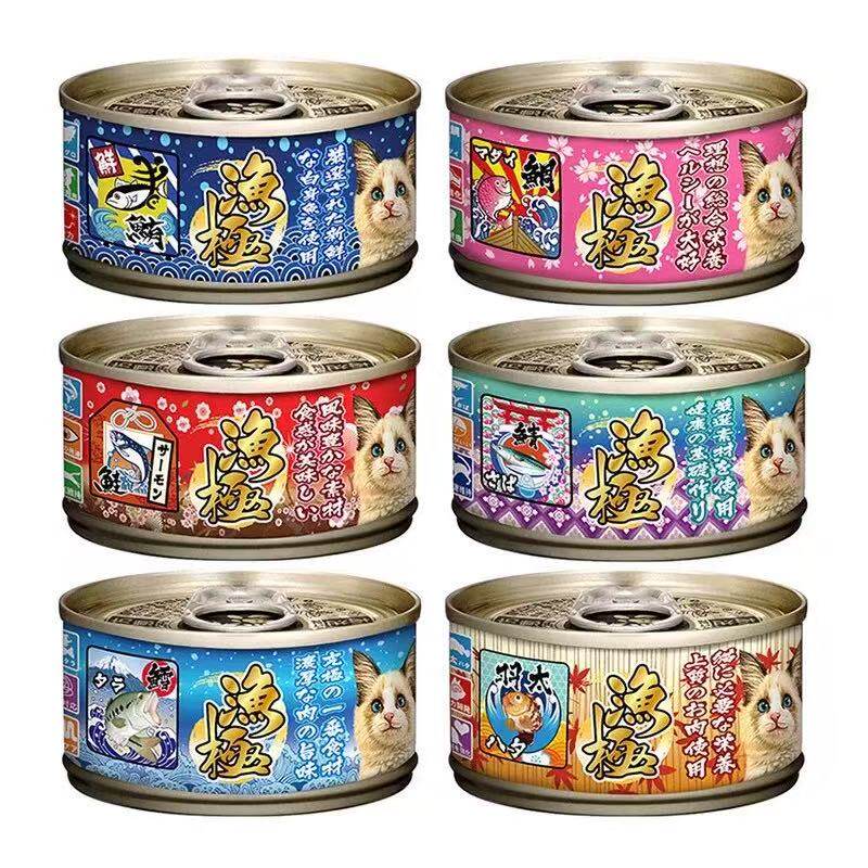 现货 日本渔极猫咪主食罐头泰国产80g*6整盒金枪鱼三文鱼红白肉