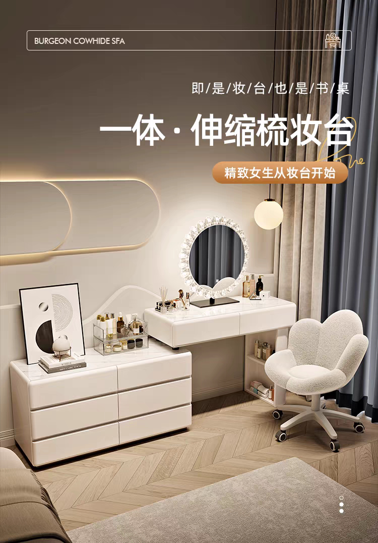 全实木梳妆台意式极简斗柜一体高级感卧室简约现代2025新款化妆桌
