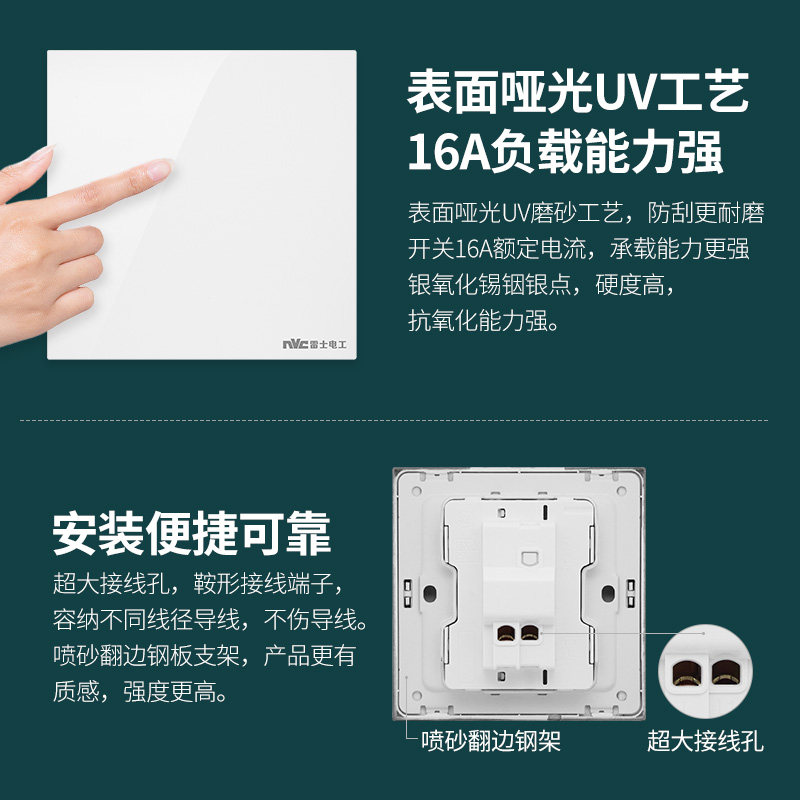 nvc雷士电工Q18釉白超薄开关插座面板套装typec接口16A开关多控